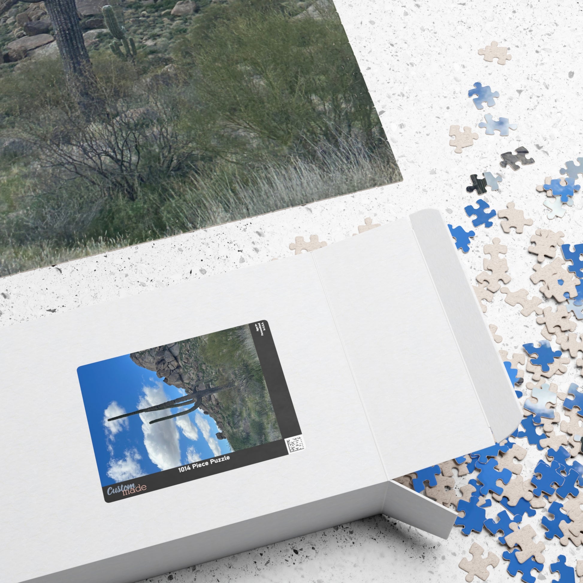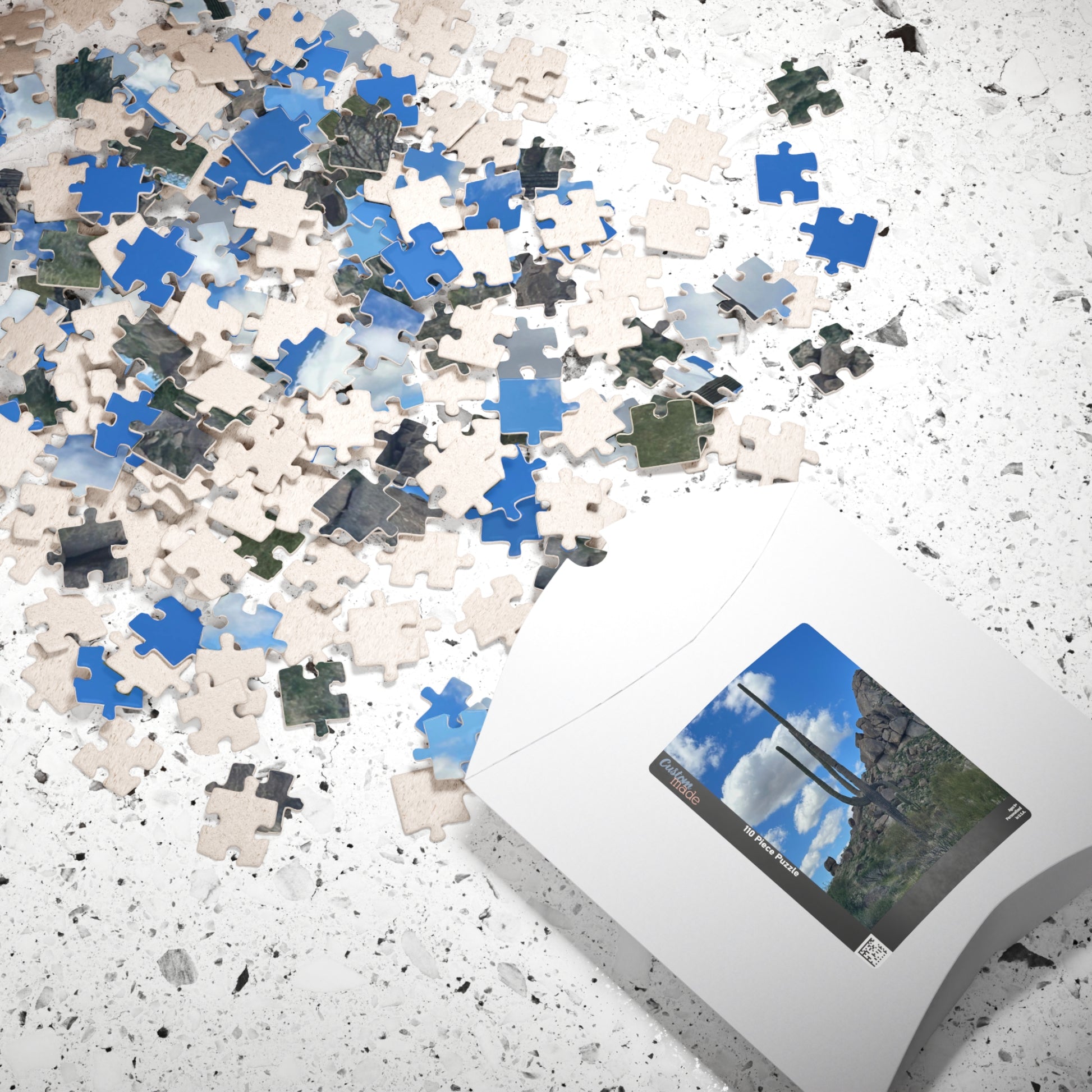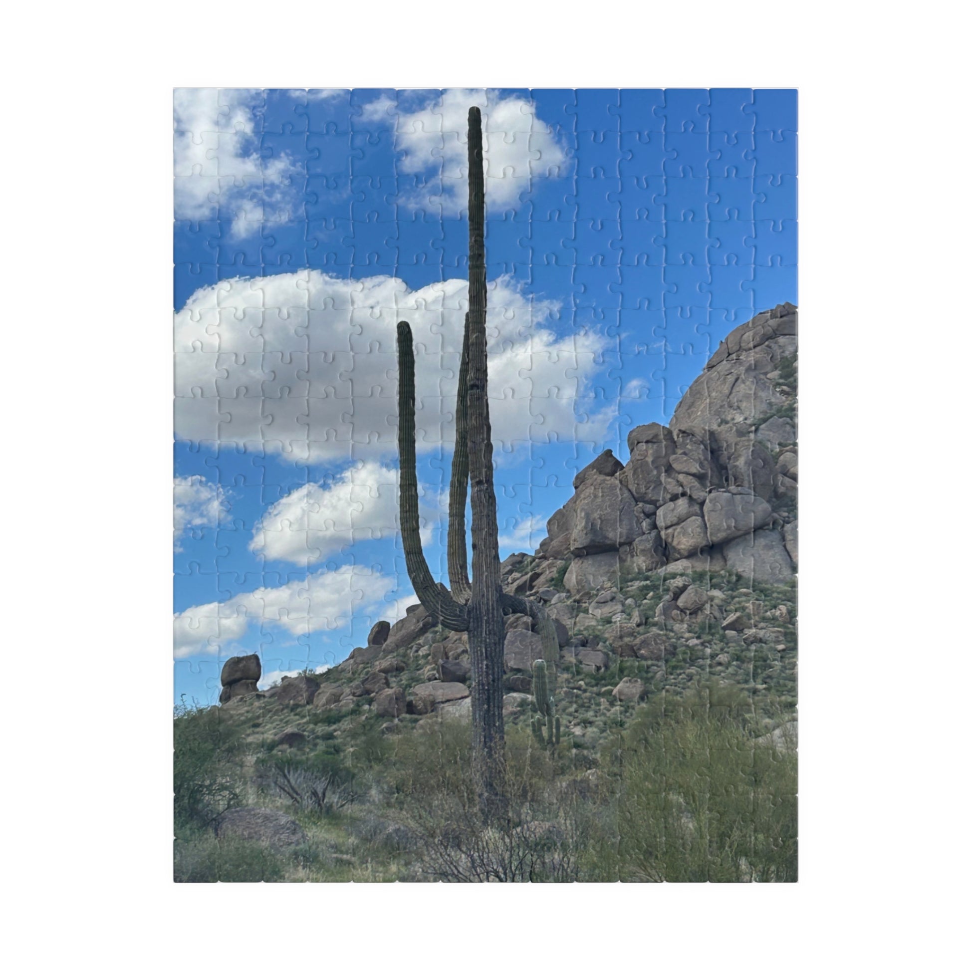 Bring a quiet piece of the desert into cozy, hands-on moments with this photographic puzzle. Sunlit rocks, a towering saguaro, and a wide blue sky invite slow-focus and calm as each glossy piece snaps into place. The sturdy chipboard pieces hold up to repeated assembly, and the printed box makes it easy to store or share with someone who loves southwestern landscapes. Work one evening, spread it across a table for a weekend project, or tuck the finished image into a frame as a reminder of open, wind-swept spaces.